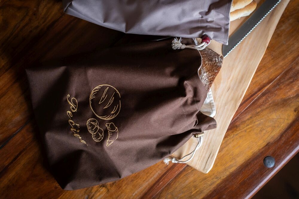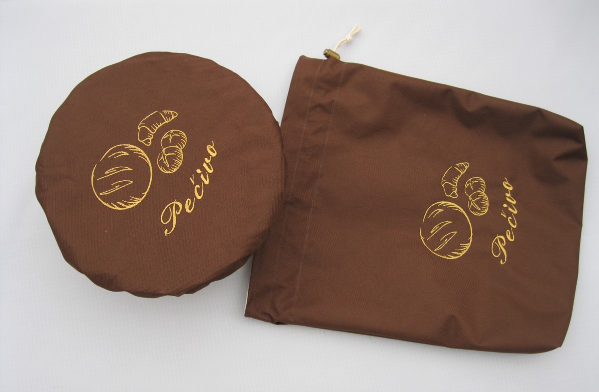 Ozdobeno naší vlastní výšivkou s tématikou pečiva.