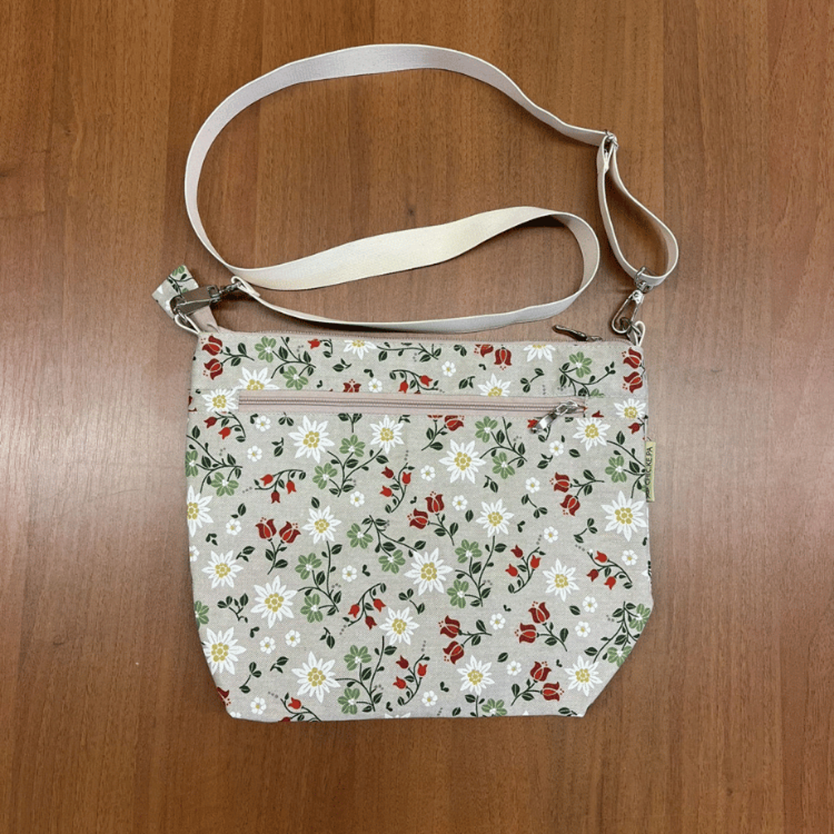 Kabelka je vyrobena z odolného materiálu ve složení 80 % bavlna a 20 % polyester, díky čemuž si drží svůj tvar a zároveň působí přirozeně a nadčasově. Ideální velikost (cca šířka 35 cm, výška 30 cm) nabízí dostatek prostoru na všechny vaše nezbytnosti, aniž by působila objemně.