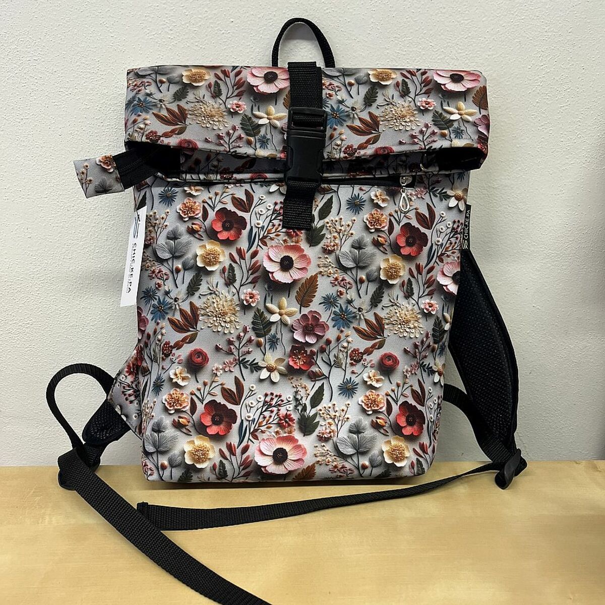 Stylový a praktický střední rolovací batoh z voděodolné látky s bílými máky. Batoh je ručně ušitý v šicí dílně Charity Kralupy nad Vltavou, a jeho koupí tak podpoříte smysluplnou práci a lokální výrobu.
